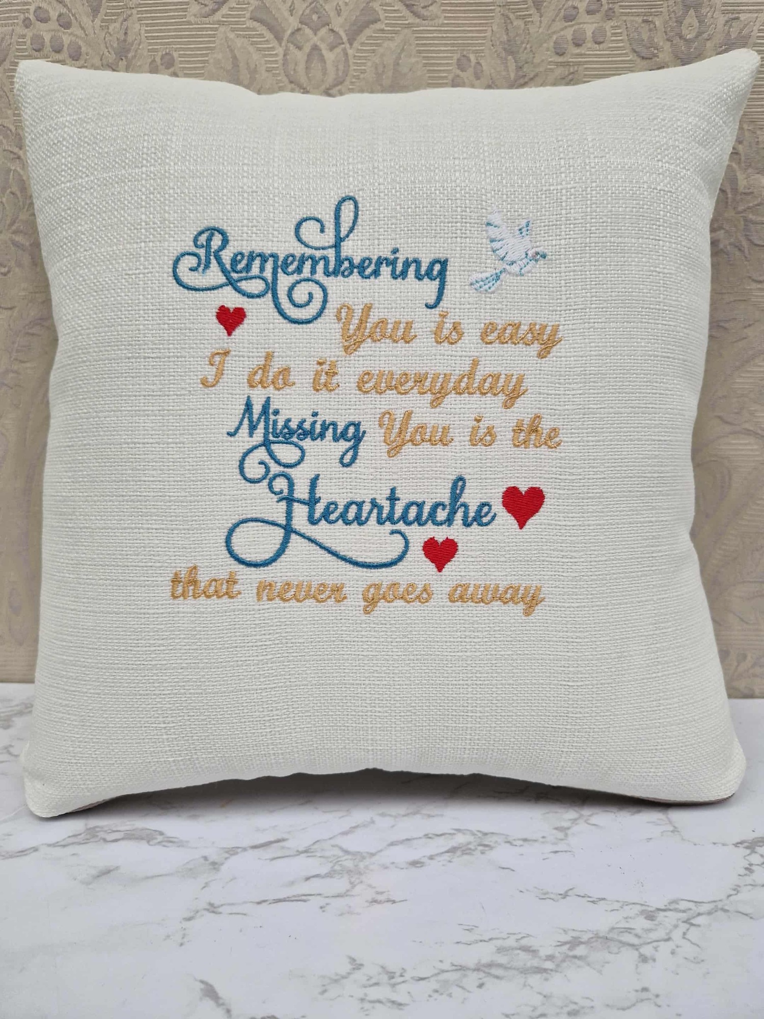 Our Memory embroidery scatters are designed to honour special moments and treasured loved ones. With thoughtful and sentimental designs, this collection offers a comforting way to keep meaningful memories close, making each piece a beautiful keepsake for your home or a heartfelt gift for someone special.